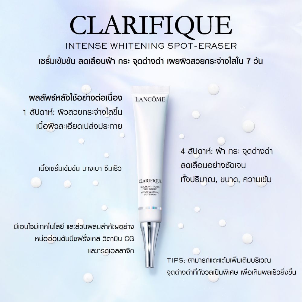 • Lancome Clarifique Intense Whitening Spot Eraser 30 ml. เซรั่มเข้มข้น ลดเลือนฝ้ากระ จุดด่างดำ เผยผิวสวยกระจ่างใสใน 7 วัน รหัส LCM11040