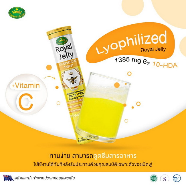 Nature s King Royal Jelly Plus Vitamin C - 20 Effervescent Tablet นมผึ้งเม็ดฟู่ผสมวิตามินซีที่แรกในเมืองไทย ได้ทั้งบำรุงผิวพรรณ และบำรุงสุขภาพ ไปพร้อมๆกันค่ะ ทานแล้ว รู้สึกสดชื่นขึ้นทันที ร่างกาย Active ตลอดทั้งวัน คือมันว้าวมากกก ,